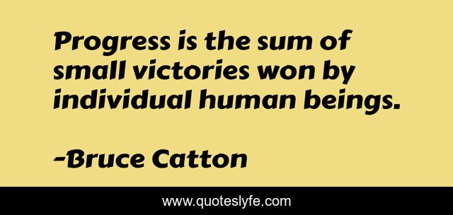 This page presents the quote "Progress is the sum of small victories won by individual human beings.". Author of this quote is Bruce Catton. .