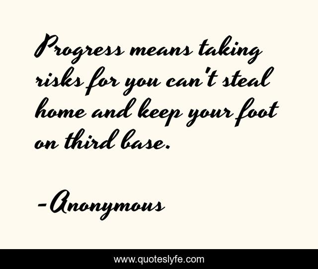 This page presents the quote "Progress means taking risks for you can't steal home and keep your foot on third base.". Author of this quote is Anonymous. .