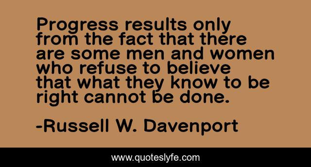 This page presents the quote "Progress results only from the fact that there are some men and women who refuse to believe that what they know to be right cannot be done.". Author of this quote is Russell W. Davenport. .
