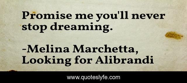 "Melina Marchetta, Looking for Alibrandi Quotes." Quoteslyfe.com, 2025. Mon. 08 Dec. 2025. <https://www.quoteslyfe.com/quote/Promise-me-you-ll-never-stop-dreaming-231778>.