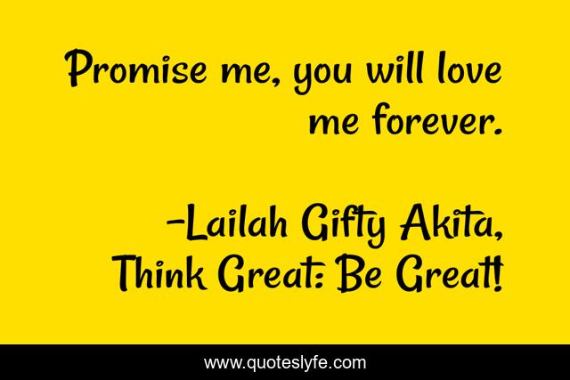 "Lailah Gifty Akita, Think Great: Be Great! Quotes." Quoteslyfe.com, 2025. Fri. 05 Dec. 2025. <https://www.quoteslyfe.com/quote/Promise-me-you-will-love-me-forever-77300>.