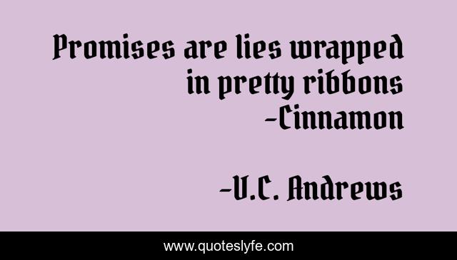 This page presents the quote "Promises are lies wrapped in pretty ribbons -Cinnamon". Author of this quote is V.C. Andrews. .