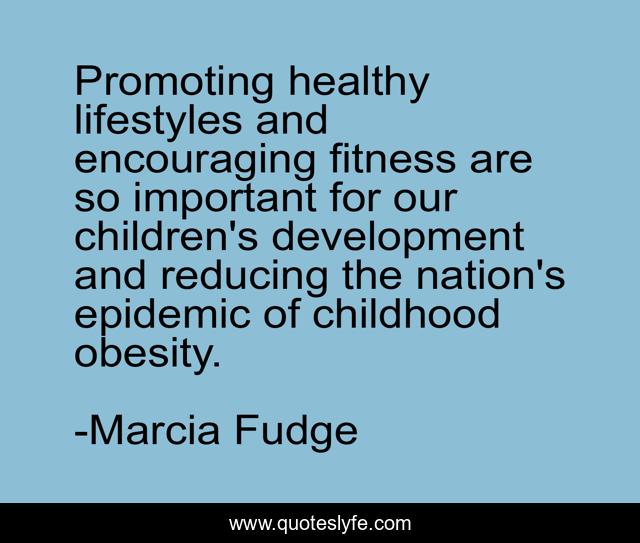 This page presents the quote "Promoting healthy lifestyles and encouraging fitness are so important for our children's development and reducing the nation's epidemic of childhood obesity.". Author of this quote is Marcia Fudge. This quote is about healthy, children, childhood,.