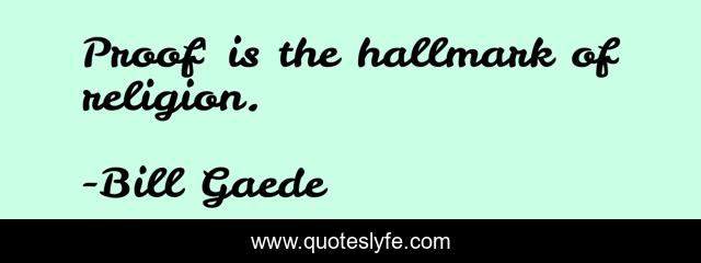 "Bill Gaede Quotes." Quoteslyfe.com, 2025. Sat. 06 Dec. 2025. <https://www.quoteslyfe.com/quote/Proof-is-the-hallmark-of-religion-30279>.
