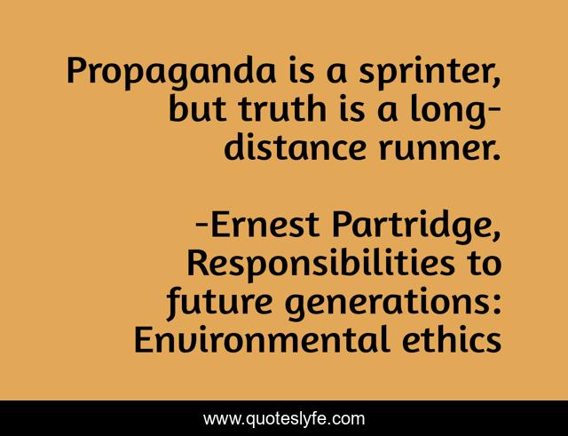 "Ernest Partridge, Responsibilities to future generations: Environmental ethics Quotes." Quoteslyfe.com, 2025. Fri. 05 Dec. 2025. <https://www.quoteslyfe.com/quote/Propaganda-is-a-sprinter-but-truth-is-9749>.
