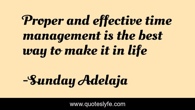 This page presents the quote "Proper and effective time management is the best way to make it in life". Author of this quote is Sunday Adelaja. This quote is about life, work, finance, effective, money, employment, blessing, time-management, job,.