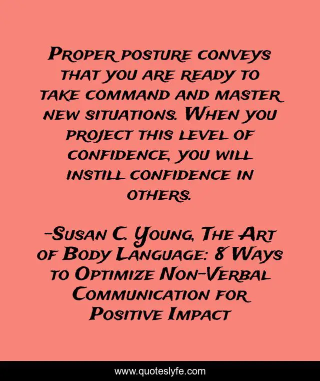 "Susan C. Young, The Art of Body Language: 8 Ways to Optimize Non-Verbal Communication for Positive Impact Quotes." Quoteslyfe.com, 2025. Fri. 05 Dec. 2025. <https://www.quoteslyfe.com/quote/Proper-posture-conveys-that-you-are-ready-233502>.