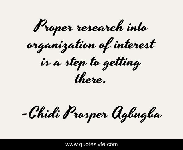 This page presents the quote "Proper research into organization of interest is a step to getting there.". Author of this quote is Chidi Prosper Agbugba. This quote is about job-seeking, career-development, business, entrepreneurship,.
