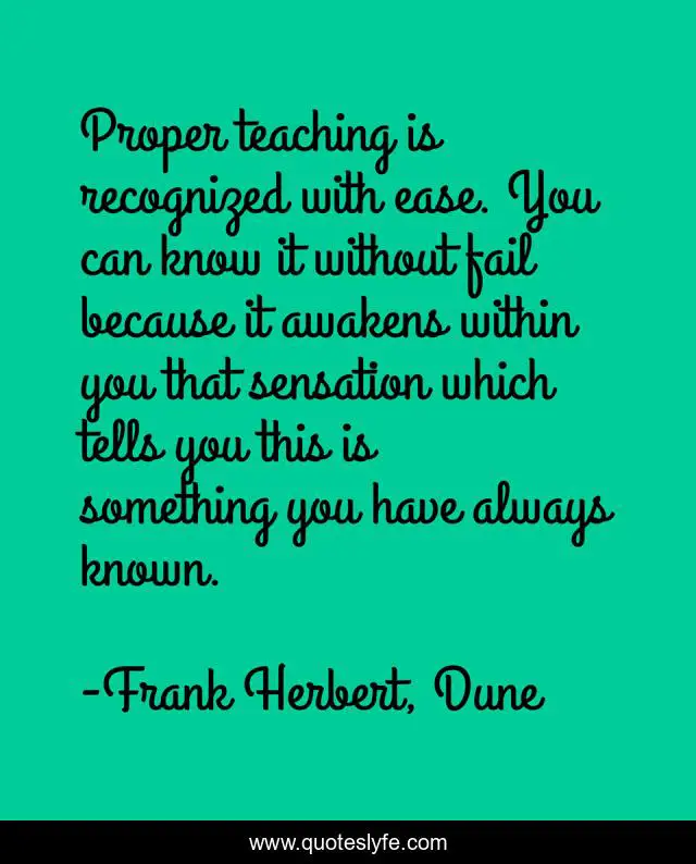 "Frank Herbert, Dune Quotes." Quoteslyfe.com, 2025. Fri. 05 Dec. 2025. <https://www.quoteslyfe.com/quote/Proper-teaching-is-recognized-with-ease-You-33504>.
