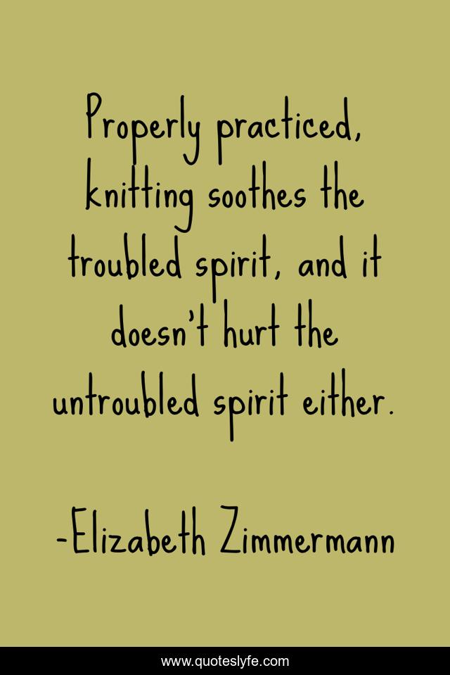 "Elizabeth Zimmermann Quotes." Quoteslyfe.com, 2025. Sat. 06 Dec. 2025. <https://www.quoteslyfe.com/quote/Properly-practiced-knitting-soothes-the-troubled-spirit-3168>.
