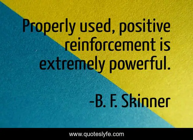 This page presents the quote "Properly used, positive reinforcement is extremely powerful.". Author of this quote is B. F. Skinner. This quote is about properly, powerful, used,.