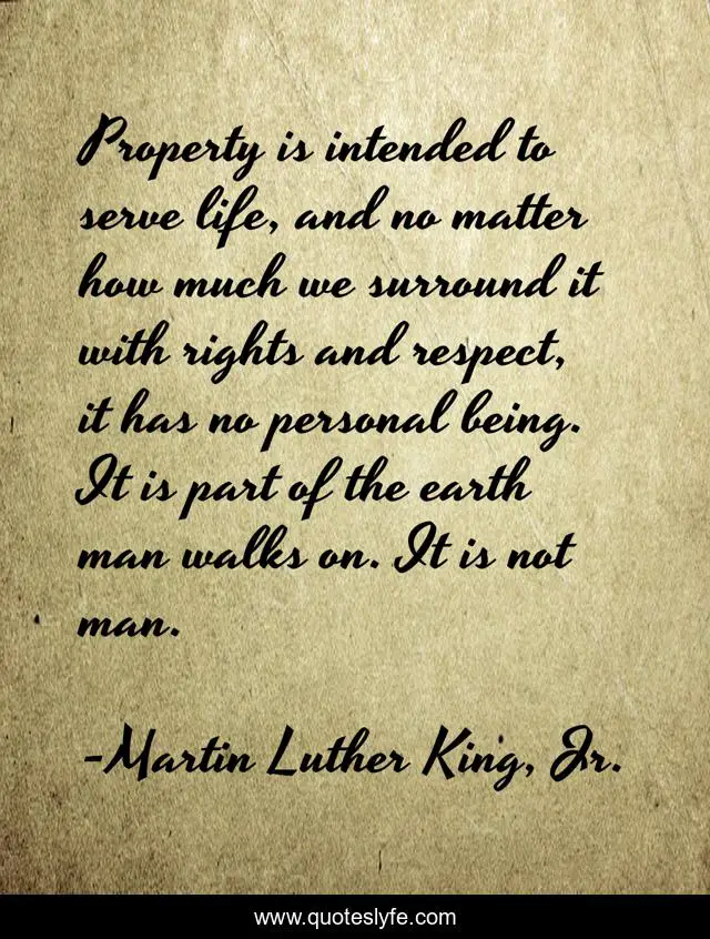 "Martin Luther King, Jr. Quotes." Quoteslyfe.com, 2025. Sat. 06 Dec. 2025. <https://www.quoteslyfe.com/quote/Property-is-intended-to-serve-life-and-283380>.