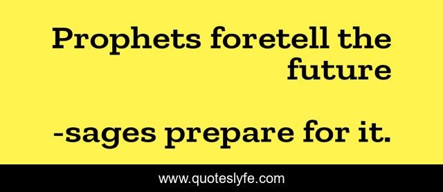 This page presents the quote "Prophets foretell the future". Author of this quote is sages prepare for it.. .