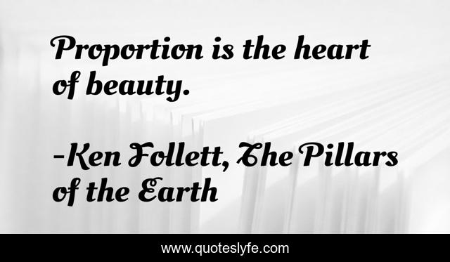 This page presents the quote "Proportion is the heart of beauty.". Author of this quote is Ken Follett, The Pillars of the Earth. This quote is about art, construction, proportion, beauty,.