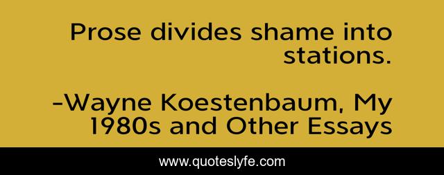 "Wayne Koestenbaum, My 1980s and Other Essays Quotes." Quoteslyfe.com, 2025. Sat. 06 Dec. 2025. <https://www.quoteslyfe.com/quote/Prose-divides-shame-into-stations-236794>.
