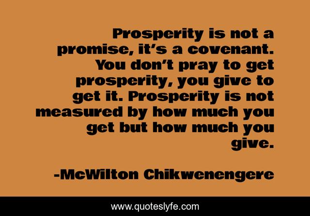 This page presents the quote "Prosperity is not a promise, it’s a covenant. You don’t pray to get prosperity, you give to get it. Prosperity is not measured by how much you get but how much you give.". Author of this quote is McWilton Chikwenengere. This quote is about giving, pray, life, prosperity,.