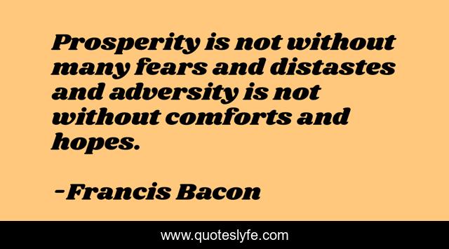 This page presents the quote "Prosperity is not without many fears and distastes and adversity is not without comforts and hopes.". Author of this quote is Francis Bacon. .