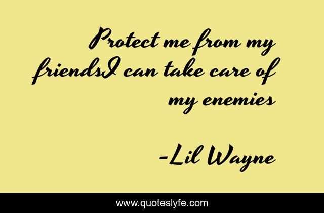 This page presents the quote "Protect me from my friendsI can take care of my enemies". Author of this quote is Lil Wayne. This quote is about betrayal, friends, lyrics, enemies,.