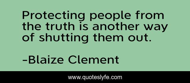 This page presents the quote "Protecting people from the truth is another way of shutting them out.". Author of this quote is Blaize Clement. .