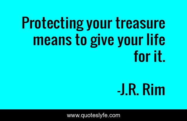 This page presents the quote "Protecting your treasure means to give your life for it.". Author of this quote is J.R. Rim. This quote is about meaning, protect, treasure, life, give,.