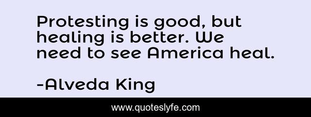 This page presents the quote "Protesting is good, but healing is better. We need to see America heal.". Author of this quote is Alveda King. This quote is about better, america, healing,.