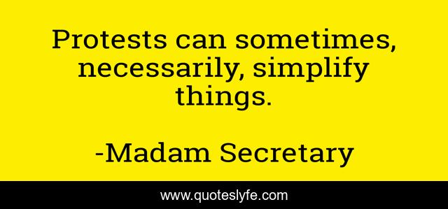 "Madam Secretary Quotes." Quoteslyfe.com, 2025. Sat. 06 Dec. 2025. <https://www.quoteslyfe.com/quote/Protests-can-sometimes-necessarily-simplify-things-185323>.