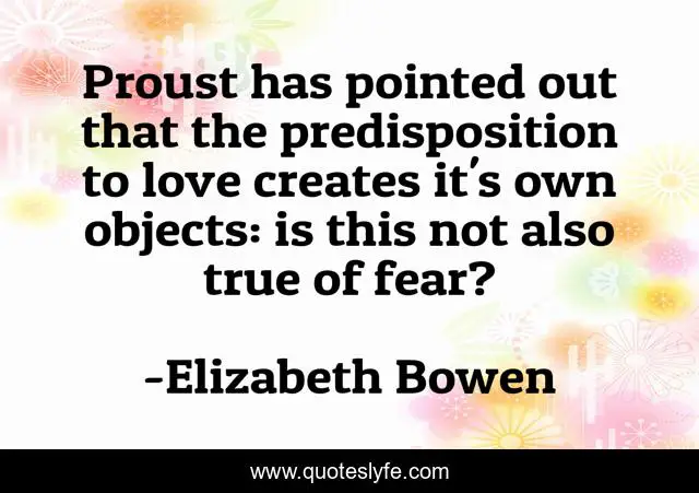 This page presents the quote "Proust has pointed out that the predisposition to love creates it's own objects: is this not also true of fear?". Author of this quote is Elizabeth Bowen. This quote is about future, anxiety,.