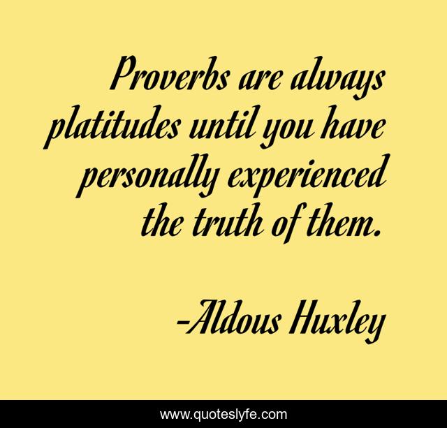 This page presents the quote "Proverbs are always platitudes until you have personally experienced the truth of them.". Author of this quote is Aldous Huxley. This quote is about always, personally,.