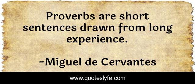 This page presents the quote "Proverbs are short sentences drawn from long experience.". Author of this quote is Miguel de Cervantes. This quote is about short, long, sentences,.