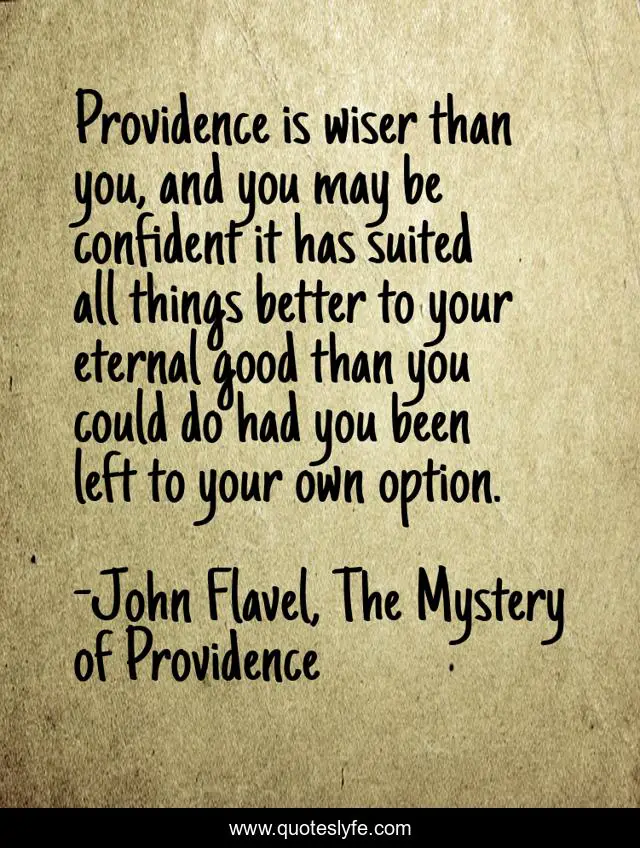 "John Flavel, The Mystery of Providence Quotes." Quoteslyfe.com, 2025. Fri. 05 Dec. 2025. <https://www.quoteslyfe.com/quote/Providence-is-wiser-than-you-and-you-11480>.