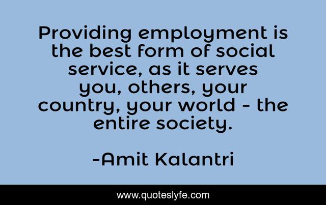 "Amit Kalantri Quotes." Quoteslyfe.com, 2025. Mon. 08 Dec. 2025. <https://www.quoteslyfe.com/quote/Providing-employment-is-the-best-form-of-102828>.