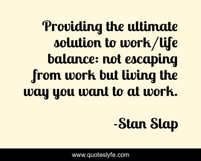 "Stan Slap Quotes." Quoteslyfe.com, 2025. Sun. 07 Dec. 2025. <https://www.quoteslyfe.com/quote/Providing-the-ultimate-solution-to-work-life-253512>.