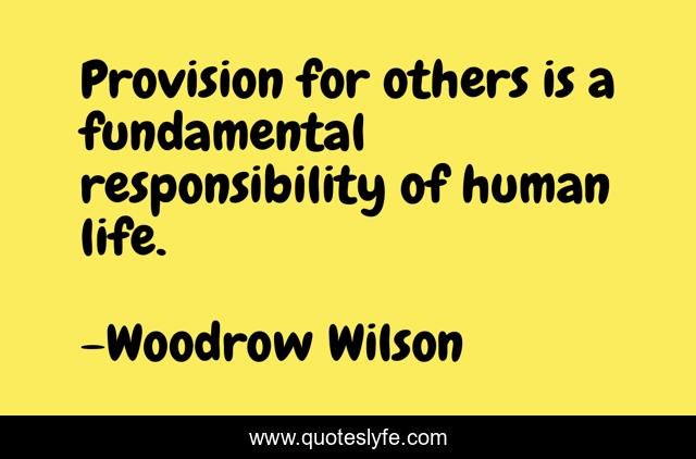 This page presents the quote "Provision for others is a fundamental responsibility of human life.". Author of this quote is Woodrow Wilson. This quote is about helping, people,.
