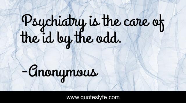 This page presents the quote "Psychiatry is the care of the id by the odd.". Author of this quote is Anonymous. .