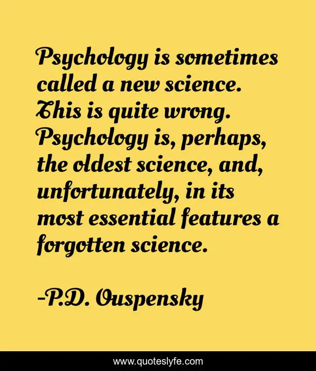This page presents the quote "Psychology is sometimes called a new science. This is quite wrong. Psychology is, perhaps, the oldest science, and, unfortunately, in its most essential features a forgotten science.". Author of this quote is P.D. Ouspensky. This quote is about science, psychology, forgotten-science,.