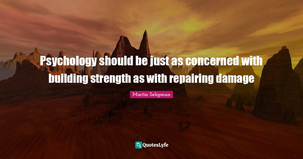 This page presents the quote "Psychology should be just as concerned with building strength as with repairing damage". Author of this quote is Martin Seligman. This quote is about motivation, strength, concerned, repairing, building, psychology, inspiration, damage,.