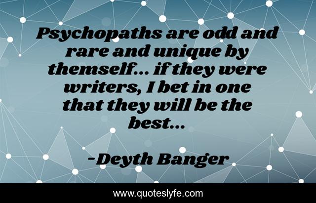 This page presents the quote "Psychopaths are odd and rare and unique by themself... if they were writers, I bet in one that they will be the best...". Author of this quote is Deyth Banger. This quote is about rare, psychopaths, themself, unique, odd, by, best,.