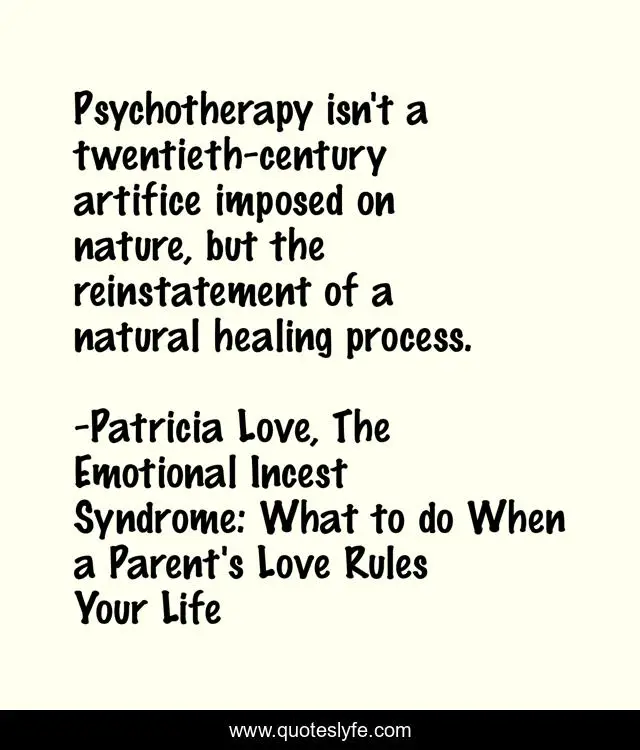 "Patricia Love, The Emotional Incest Syndrome: What to do When a Parent's Love Rules Your Life Quotes." Quoteslyfe.com, 2025. Sun. 07 Dec. 2025. <https://www.quoteslyfe.com/quote/Psychotherapy-isn-t-a-twentieth-century-artifice-103465>.