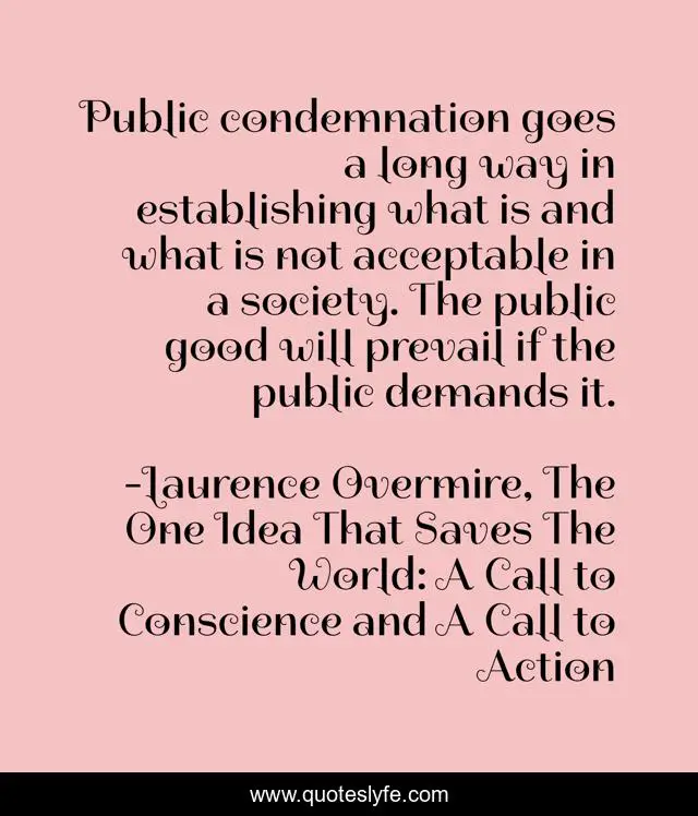 "Laurence Overmire, The One Idea That Saves The World: A Call to Conscience and A Call to Action Quotes." Quoteslyfe.com, 2025. Fri. 05 Dec. 2025. <https://www.quoteslyfe.com/quote/Public-condemnation-goes-a-long-way-in-102584>.
