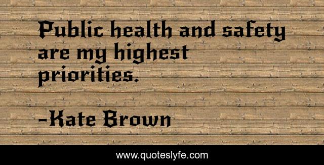 This page presents the quote "Public health and safety are my highest priorities.". Author of this quote is Kate Brown. This quote is about safety, priorities,.