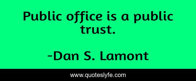 This page presents the quote "Public office is a public trust.". Author of this quote is Dan S. Lamont. .