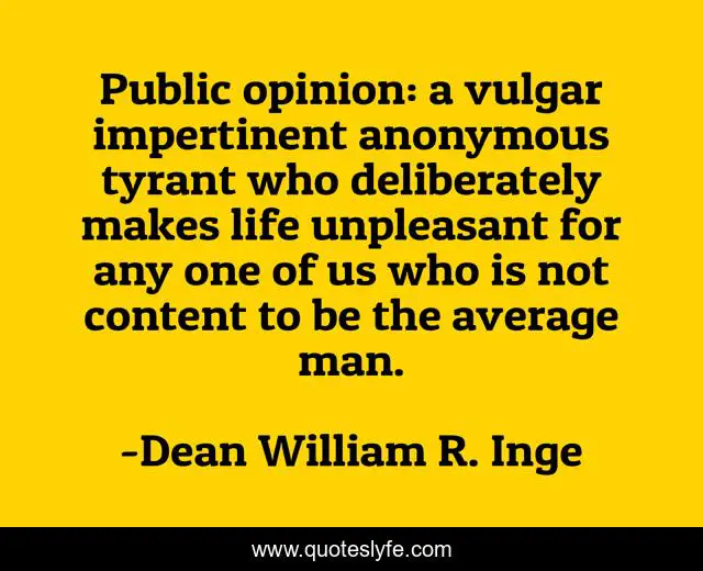 "Dean William R. Inge Quotes." Quoteslyfe.com, 2025. Sat. 06 Dec. 2025. <https://www.quoteslyfe.com/quote/Public-opinion-a-vulgar-impertinent-anonymous-tyrant-264681>.