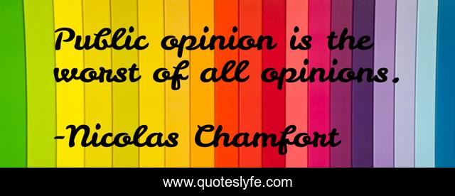 This page presents the quote "Public opinion is the worst of all opinions.". Author of this quote is Nicolas Chamfort. This quote is about opinion, public-opinion, society,.