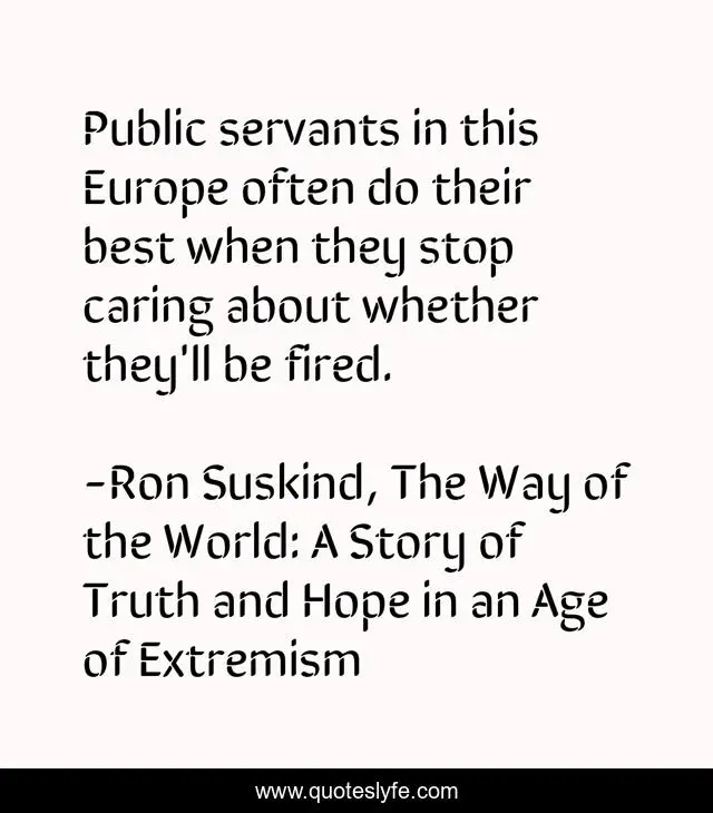 "Ron Suskind, The Way of the World: A Story of Truth and Hope in an Age of Extremism Quotes." Quoteslyfe.com, 2025. Fri. 05 Dec. 2025. <https://www.quoteslyfe.com/quote/Public-servants-in-this-Europe-often-do-142094>.