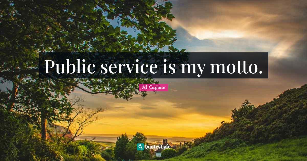 This page presents the quote "Public service is my motto.". Author of this quote is Al Capone. This quote is about public service, my motto, motto,.