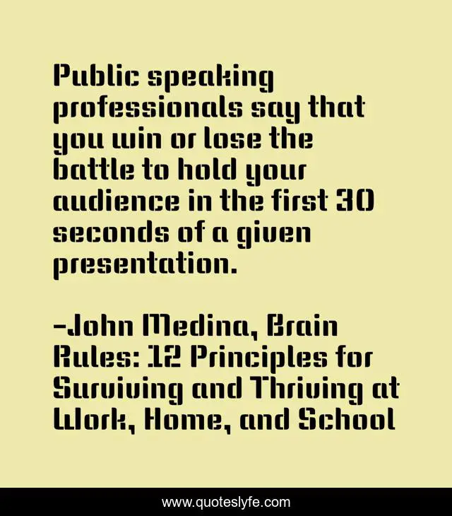 "John Medina, Brain Rules: 12 Principles for Surviving and Thriving at Work, Home, and School Quotes." Quoteslyfe.com, 2025. Tue. 09 Dec. 2025. <https://www.quoteslyfe.com/quote/Public-speaking-professionals-say-that-you-win-198745>.