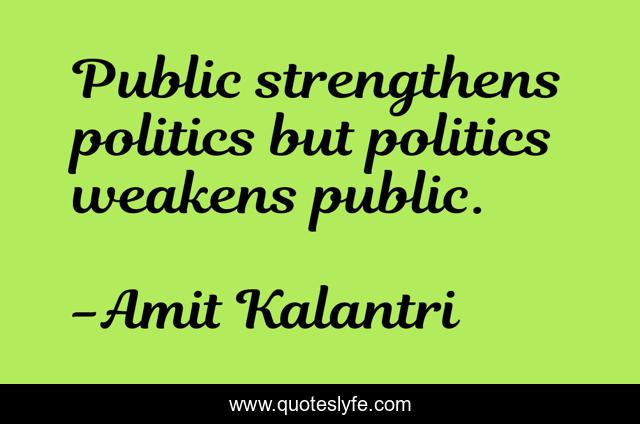 "Amit Kalantri Quotes." Quoteslyfe.com, 2025. Tue. 09 Dec. 2025. <https://www.quoteslyfe.com/quote/Public-strengthens-politics-but-politics-weakens-public-104675>.