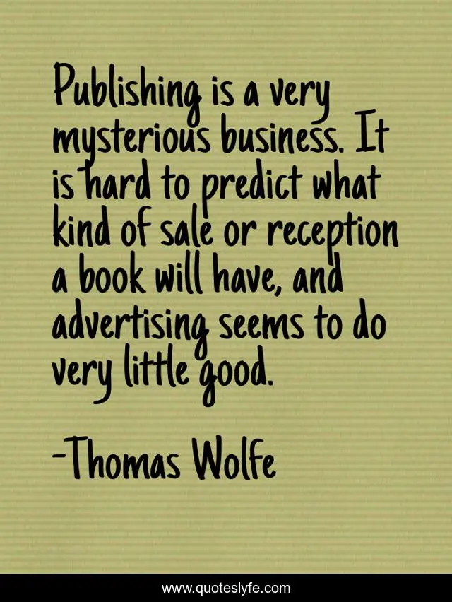 "Thomas Wolfe Quotes." Quoteslyfe.com, 2025. Sun. 07 Dec. 2025. <https://www.quoteslyfe.com/quote/Publishing-is-a-very-mysterious-business-It-281897>.