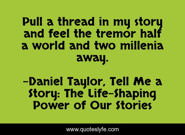 "Daniel Taylor, Tell Me a Story: The Life-Shaping Power of Our Stories Quotes." Quoteslyfe.com, 2025. Fri. 05 Dec. 2025. <https://www.quoteslyfe.com/quote/Pull-a-thread-in-my-story-and-35086>.