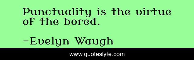 This page presents the quote "Punctuality is the virtue of the bored.". Author of this quote is Evelyn Waugh. This quote is about punctuality, bored, virtue,.